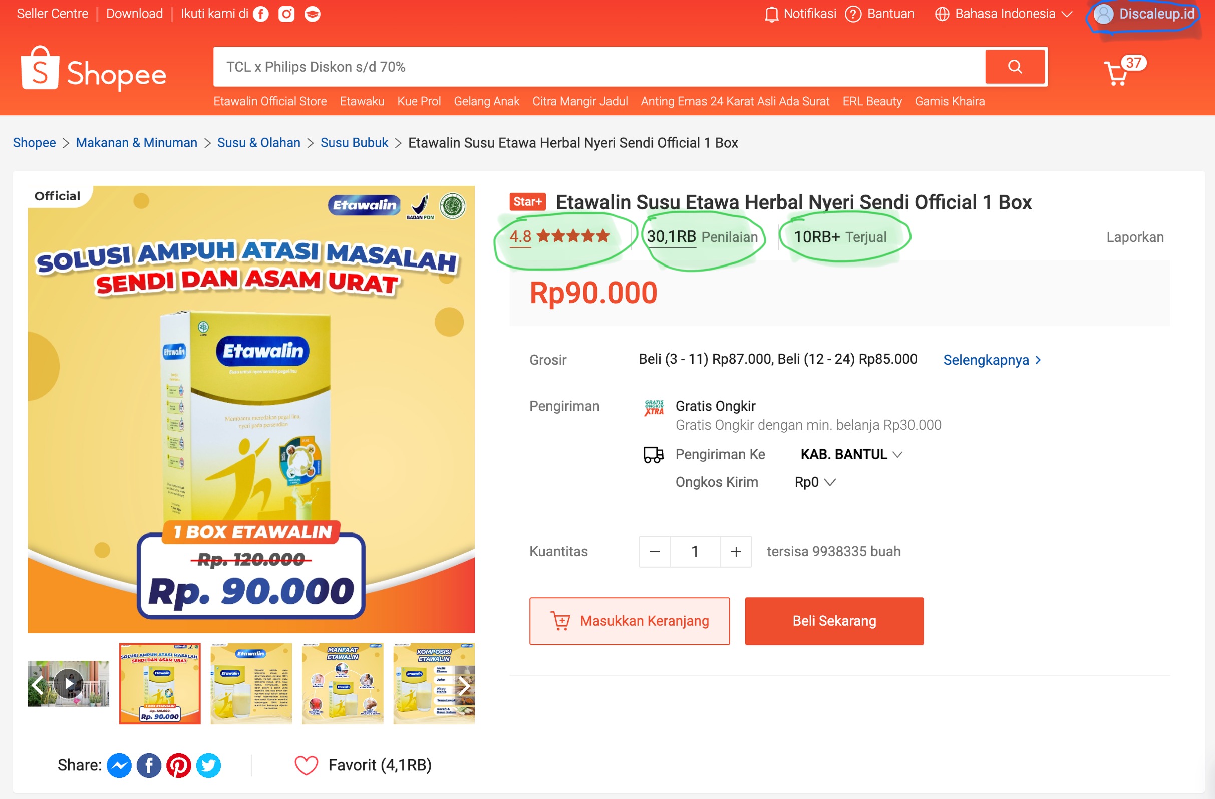 Dan review yang didapatkan dari kerja keras ini 4.8 dari 5. Artinya ini memuaskan pembeli.